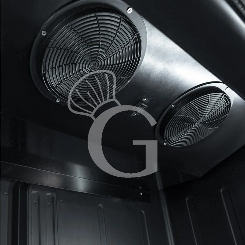All’interno sono presenti 8 delle griglie con cremagliere e un sensore di apertura della porta che arresta la ventola a porta aperta.
