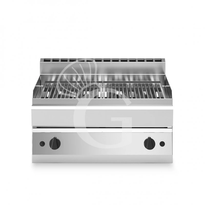 La griglia a gas è un apparecchio versatile e facile all’uso che permette di cuocere cibi posti direttamente sulle griglie in acciaio inox. La struttura esterna è in acciaio INOX-AISI304, lo spessore del piano è 10/10 (1 mm) garantisce maggiore solidità e robustezza.