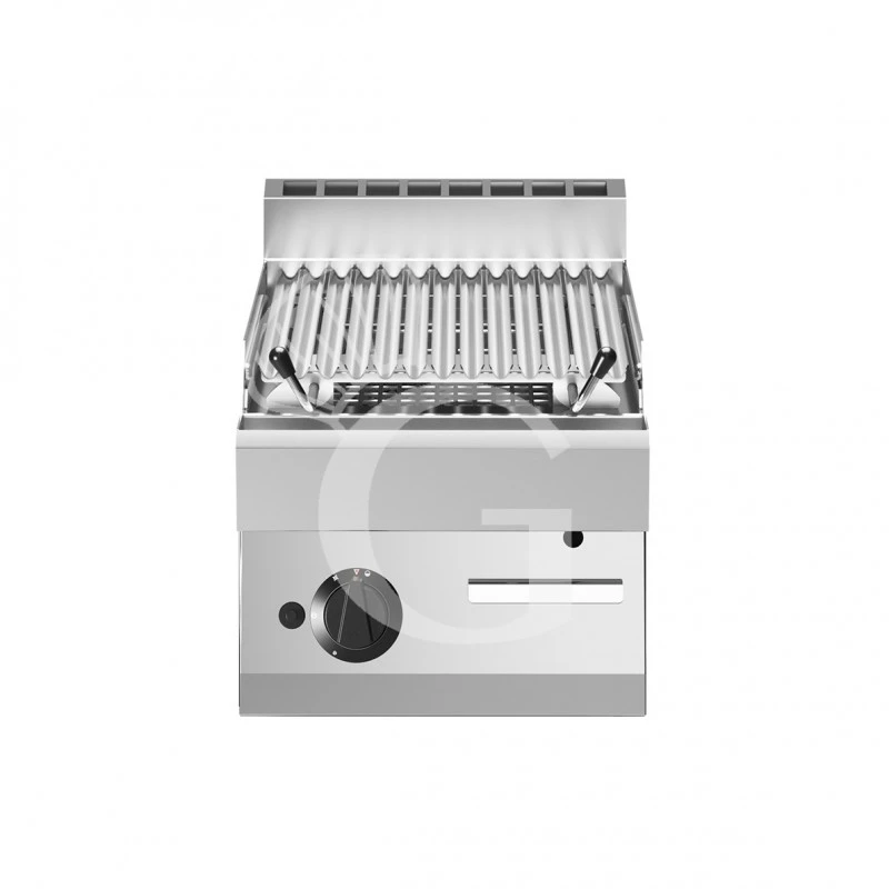 Griglia a gas e pietra lavica da banco con 1 zona di cottura in acciaio e profondità 700 mm.