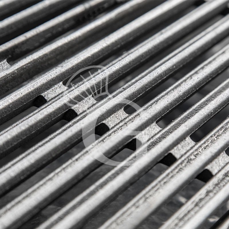 La griglia di cottura è in acciaio inox per la cottura di carne o pesce. Il piano di cottura è realizzato in acciaio inox AISI304 con spessore 10/10 (1 mm).