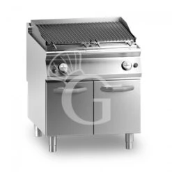 Griglia a gas e pietra lavica su armadio con 2 zone di cottura e profondità 900 mm.
