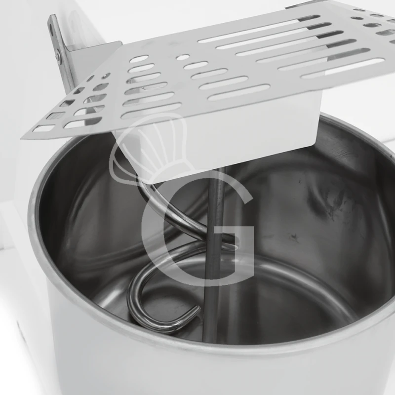 Il materiale esterno con cui è prodotta l’impastatrice è ferro verniciato bianco con vernice atossica per alimenti che ne innalzano la resistenza alla corrosione e agli agenti chimici come oli e grassi.