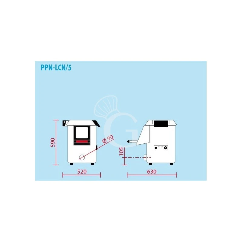 Lavacozze da banco con scarico a lavandino, monofase, produzione oraria 60 Kg/h e carico massimo 3/5 Kg.