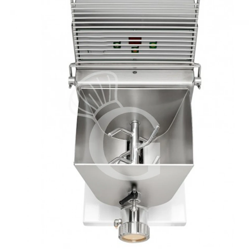 La struttura esterna, la vasca, il supporto della vasca, il gancio impastatore e l’elica sono realizzati in acciaio inox AISI304.