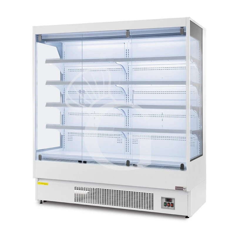 Murale espositivo ventilato bianco con porte battenti, temperatura -1°C/+7°C e L 1920mm.