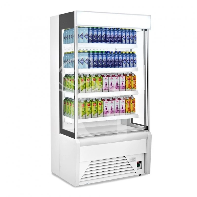 L’apparecchio presenta un’estesa area di esposizione distribuita in 4 ripiani di larghezza 360 mm realizzati in acciaio rivestito. La praticità di utilizzo è data inoltre dalla possibilità di regolare i ripiani sia in altezza sia in angolazione. I ripiani possiedono poi espositori per etichette per poter esporre agevolmente il prezzo e le caratteristiche del prodotto.