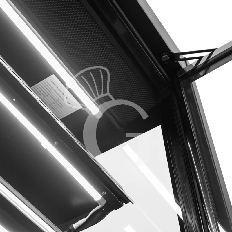 I prodotti all’interno del murale vengono esposti in modo accattivante grazie alla presenza di illuminazione a LED interna. Il funzionamento del murale è rapido e intuitivo, controllo digitale della temperatura attraverso un display e sbrinamento automatico. L’evaporazione dell’acqua di condensa è automatica, l’acqua viene raccolta in una bacinella in cui evapora tramite resistenza.