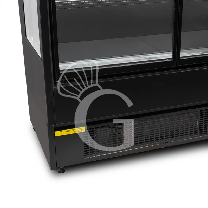Murale espositivo ventilato nero con porte battenti, temperatura -1°C/+7°C e L 1920mm.