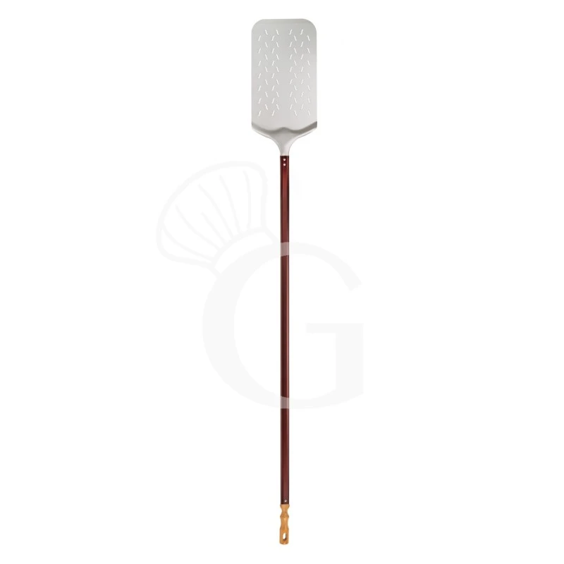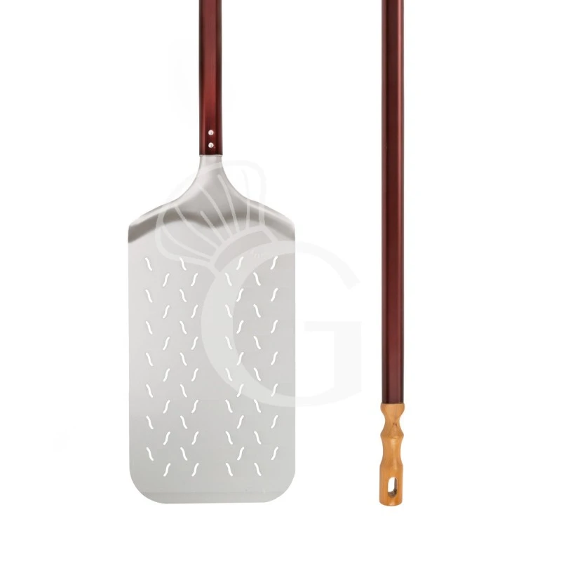 La pala per infornare è realizzata in lega di alluminio anodizzato. La pala è perforata per consentire lo scarico della farina in eccesso dall’impasto e per renderla più leggera e maneggevole.