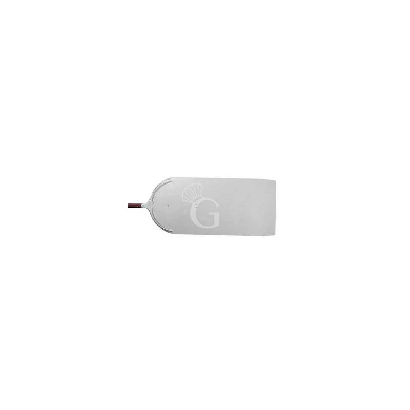 La pala, indicata per la pizza al metro, è dotata di micropori sulla superficie per aumentare la scorrevolezza della pasta ed è rinforzata con un sostegno in alluminio sul retro.