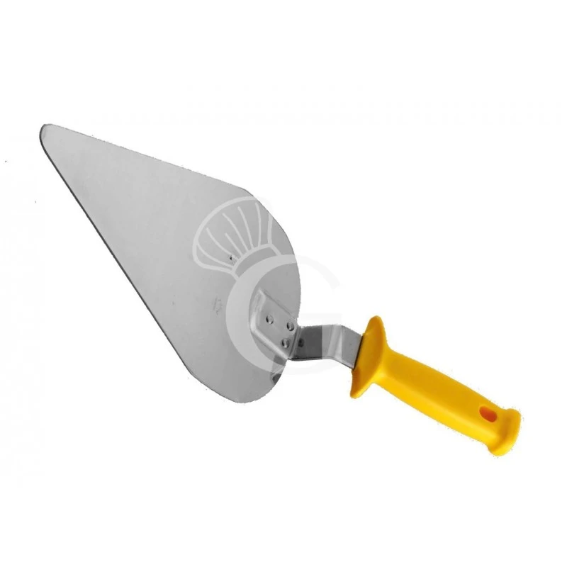 Paletta triangolare per pizza in inox con lama di dimensioni 150 x 250 mm.
