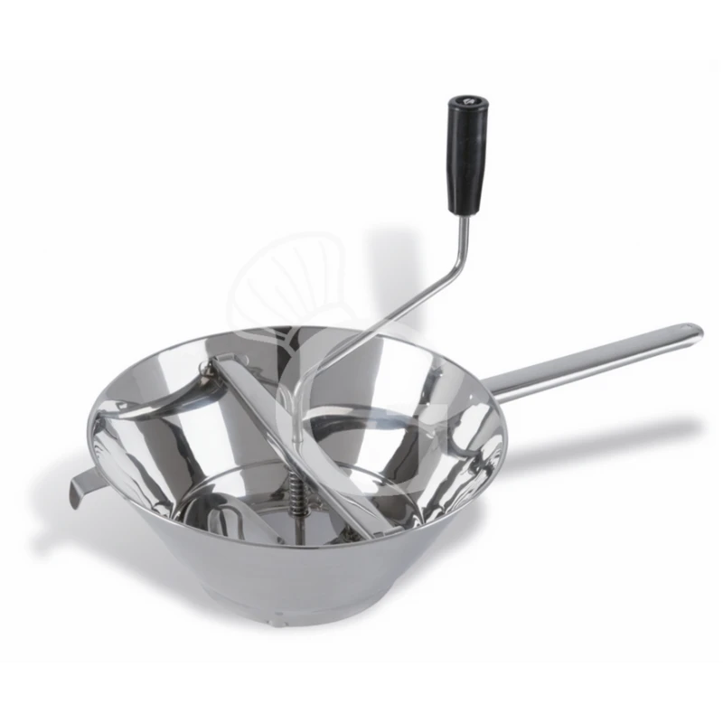 Utensile costruito interamente in acciaio inox 18/10 di elevata qualità, viene utilizzato per schiacciare e rendere lisci e cremosi alimenti morbidi e per eliminare la buccia in preparazioni a base di frutta, verdura e legumi.