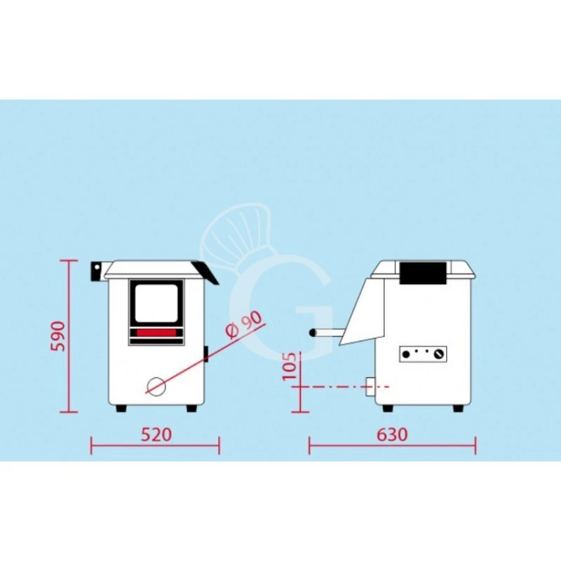 L 520 mm x P 630 mm x H 590 mm