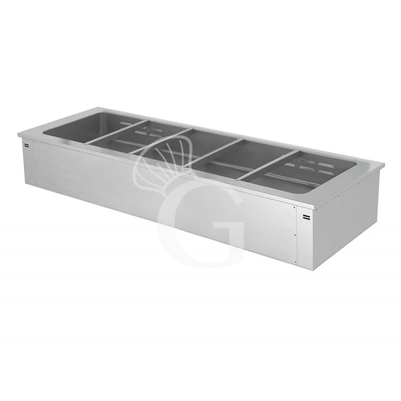 Il piano caldo da incasso con vasca ventilata è ideale per integrare gli elementi self-service con le strutture portanti già predisposte.