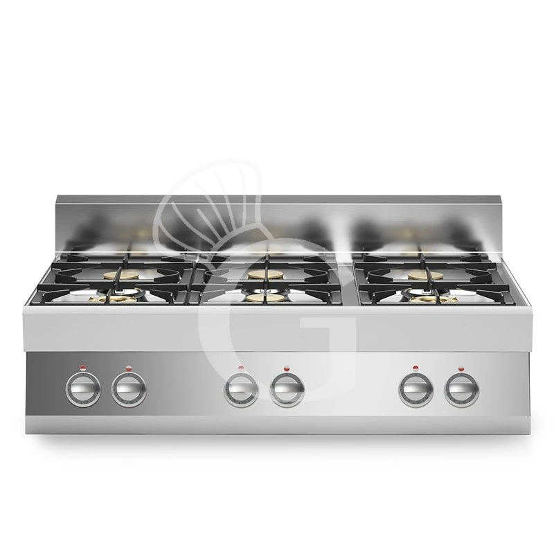 Piano di cottura a gas da banco con 6 fuochi con bruciatore pilota.