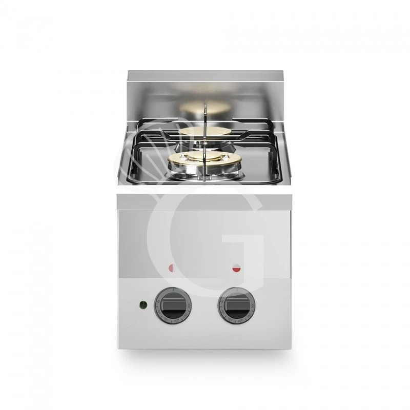 Piano di cottura da banco a gas potenziato con 2 fuochi.