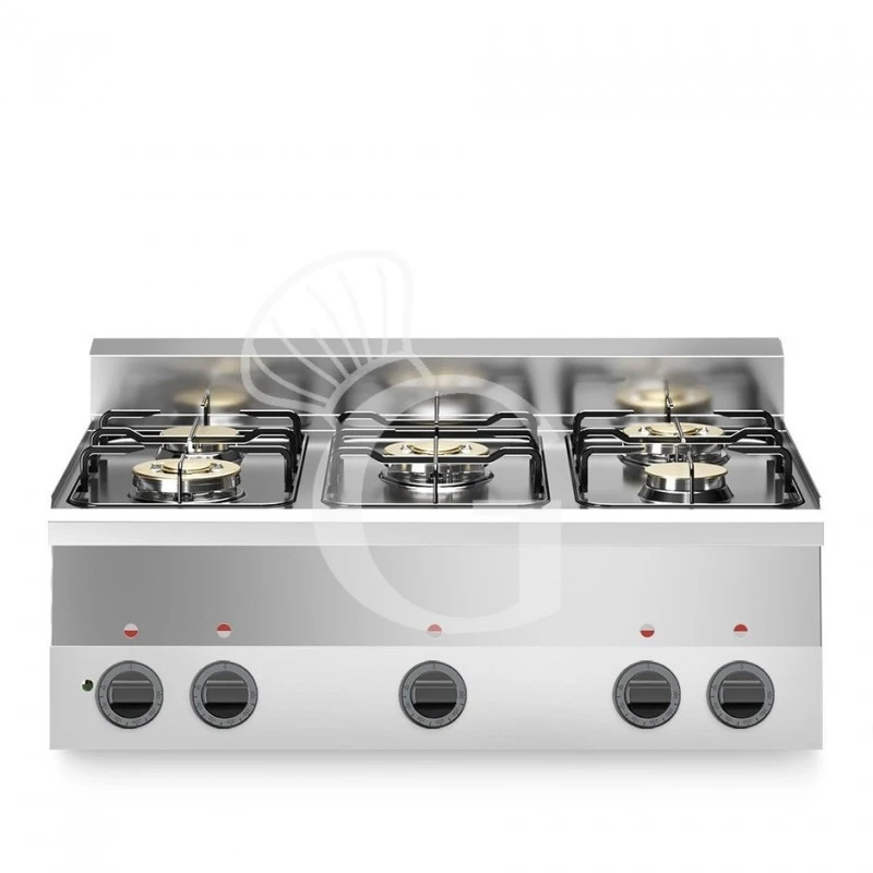 Piano di cottura da banco a gas potenziato con 5 fuochi.