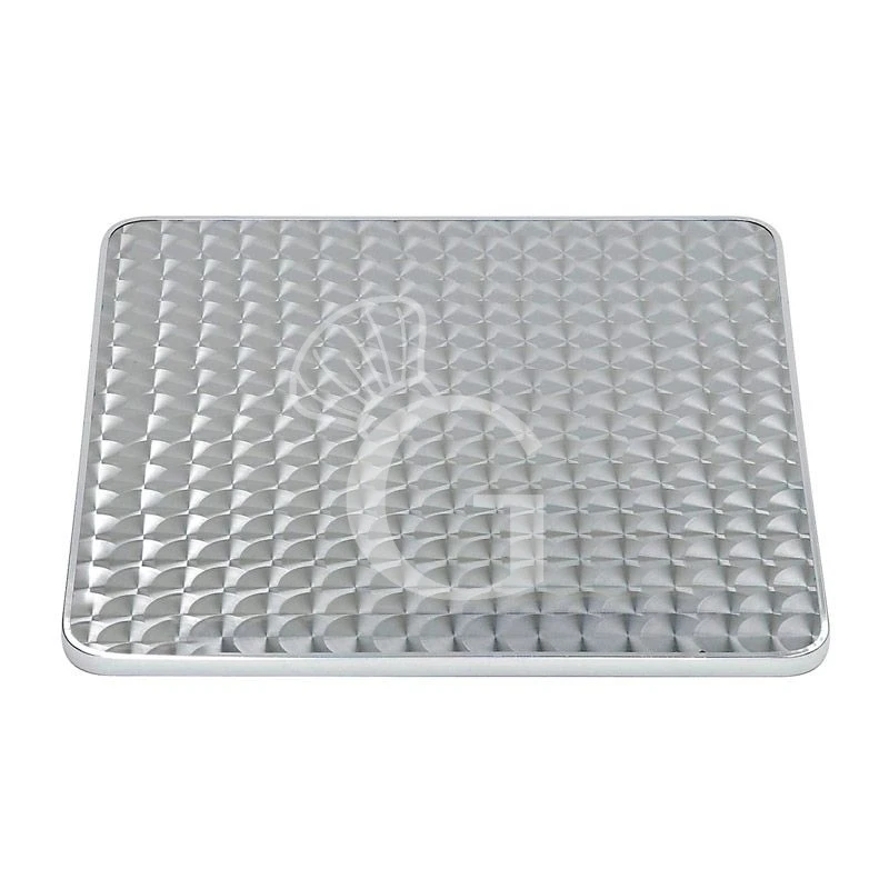 Piano quadrato in acciaio per esterno, dimensioni 800 mm x 800 mm.