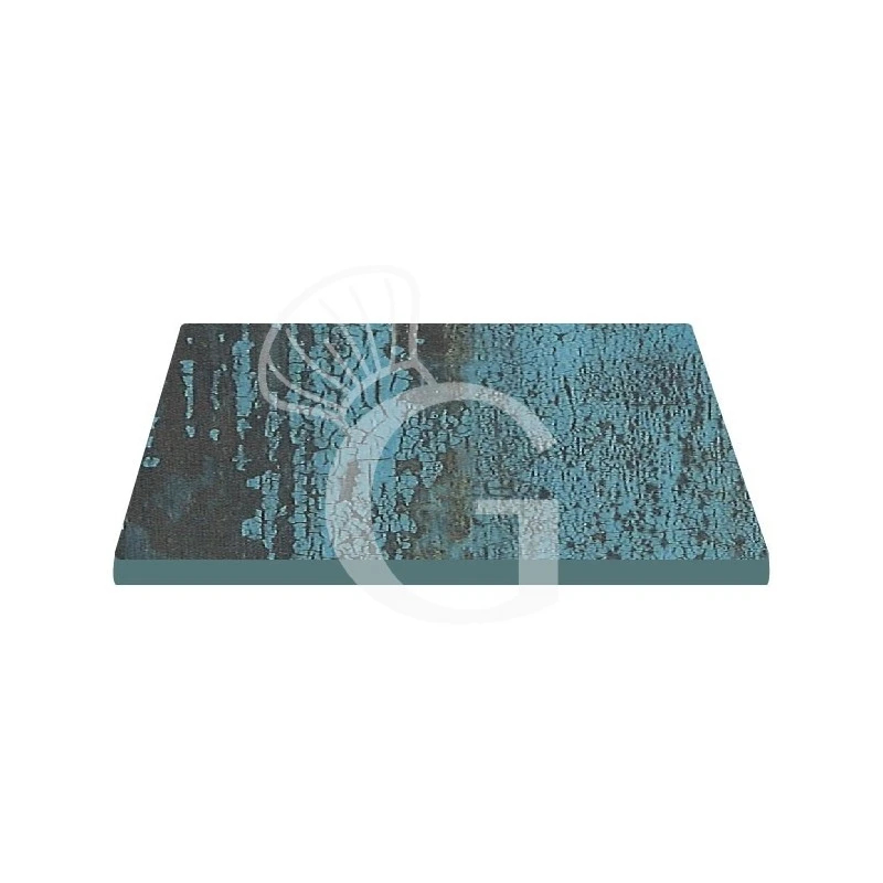 Piano quadrato in stratificato HPL aqua painted metal, 600×600 mm, spessore 10 mm.