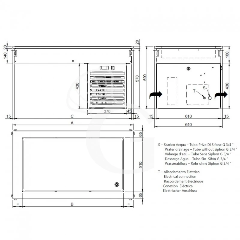 La piletta di scarico è da ¾ pollici mentre l’unità refrigerante è posta su supporto estraibile per facilitare la manutenzione e funziona con GAS R455A, dotato di un’elevata capacità di raffreddamento e di un’elevata efficienza energetica, soddisfando totalmente i requisiti di eco sostenibilità e di attenzione all’ambiente. La sua applicazione in molteplici ambiti rende questo gas più versatile rispetto al gas propano mantenendo comunque una bassa infiammabilità.