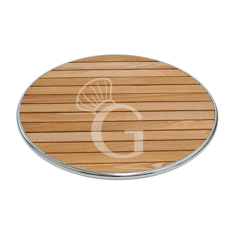 Piano rotondo in doghe di legno bordato in alluminio per esterno – diametro 800 mm.