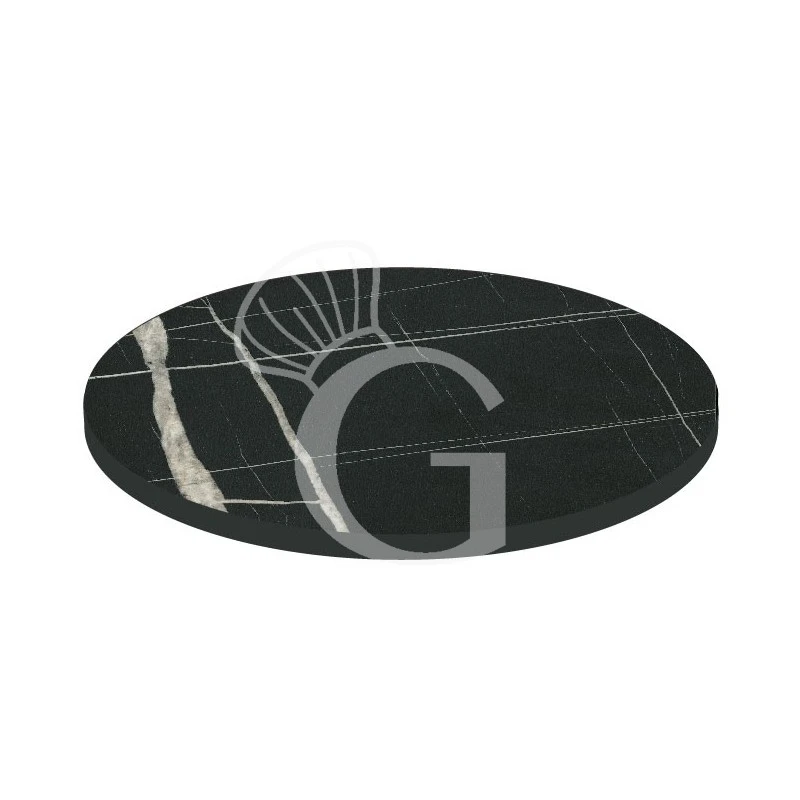 Piano rotondo in stratificato HPL marmo nero, Ø 600 mm, spessore 10 mm.