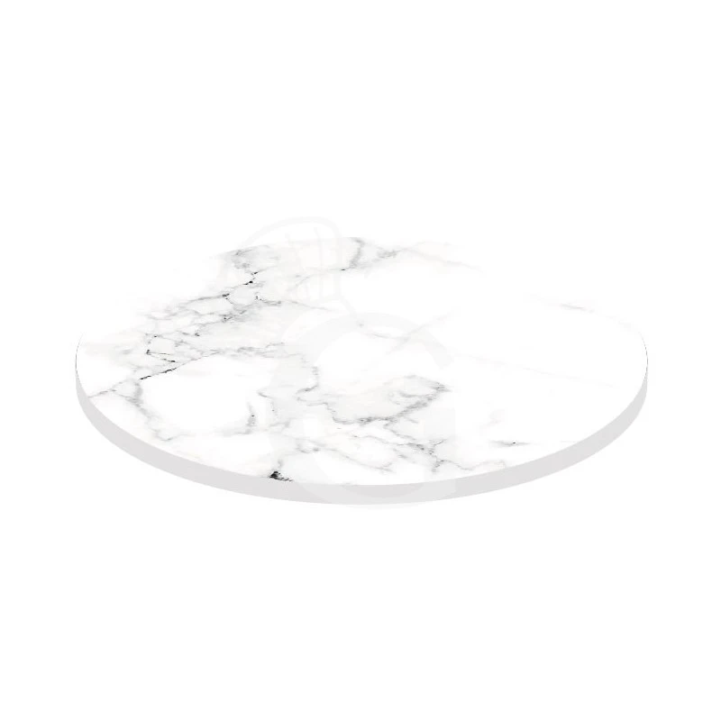 Piano rotondo in stratificato HPL statuario, Ø 600 mm, spessore 10 mm.