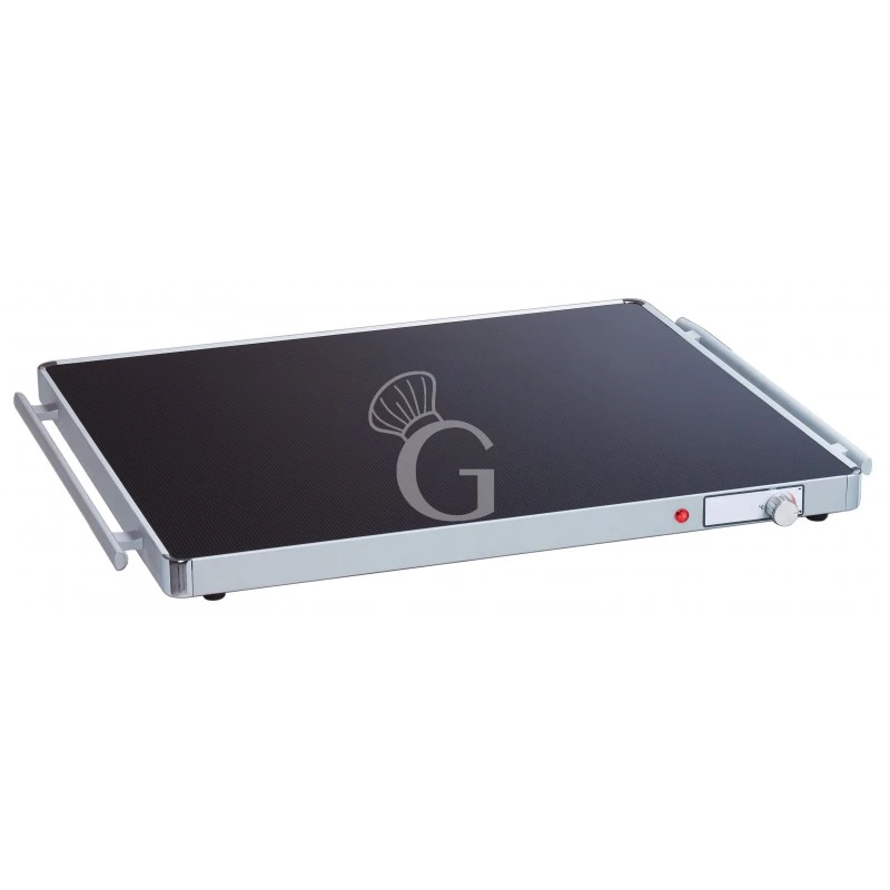 Il sistema di riscaldamento è controllato da un termostato che mantiene sempre la temperatura ottimale e tramite la manopola di comando si può variare la potenza da minima a massima; il riscaldamento del prodotto viene realizzato tramite un elemento riscaldante che cede calore al cibo per contatto tra il piano ed il piatto che lo contiene.