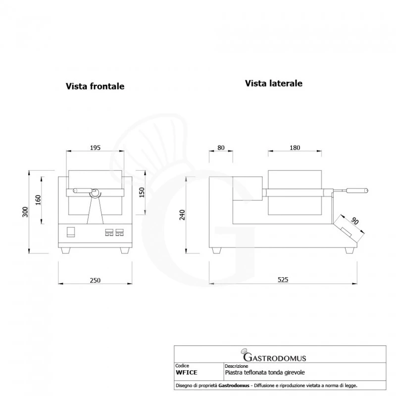 Piastra per panino salato o gelato, teflonata tonda, girevole – potenza1100w.