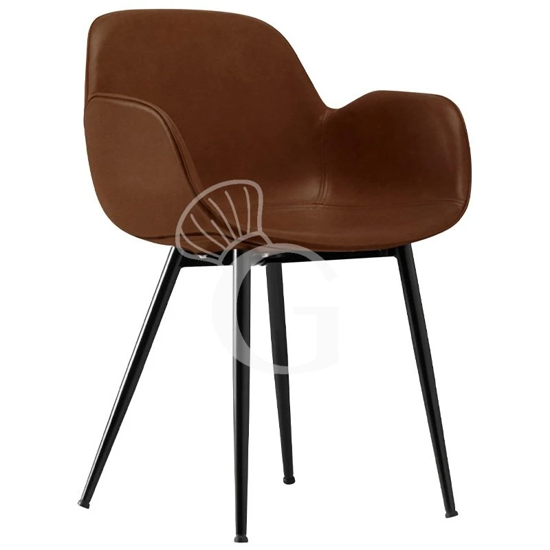 La sedia ha una struttura in metallo verniciato e seduta e schienale in ecopelle nei colori grigio e marrone.
