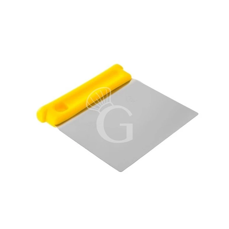 Raschietto realizzato in inox con impugnatura ergonomica in polipropilene rigida con lama flessibile, ideale per dividere l’impasto della pizza e per la pulizia.
