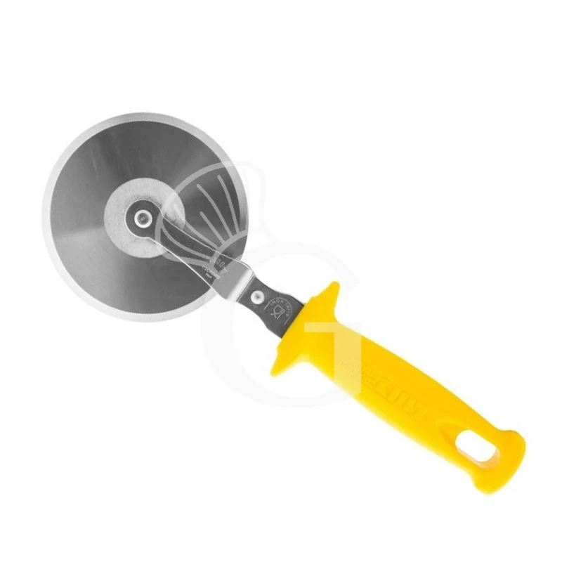 Rotella tagliapizza dritta realizzata in inox con manico in polipropilene.