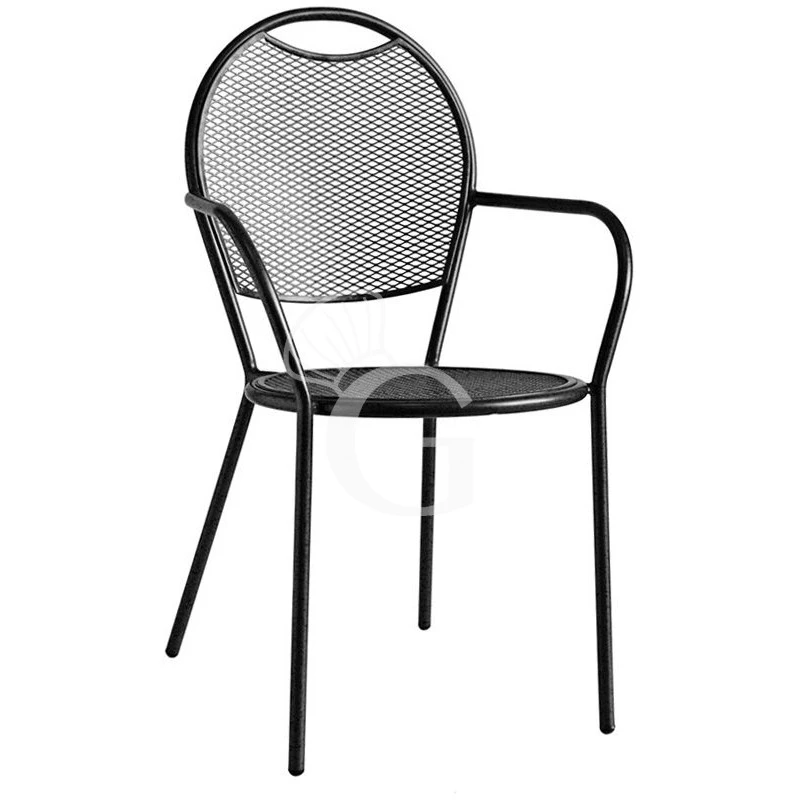 La linea con comodi braccioli e il materiale resistente la rendono adatta ad ambienti esterni per arredare in modo moderno giardini, terrazze, spazi esterni di bar e ristoranti.