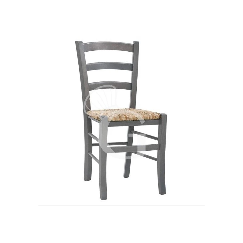 La sedia modello Giuly ha una struttura in legno con schienale in legno e seduta impagliata ed è disponibile nei colori bianco, rosso, marrone e grigio.