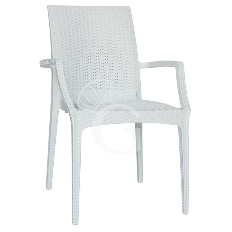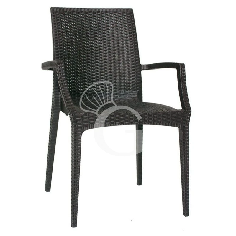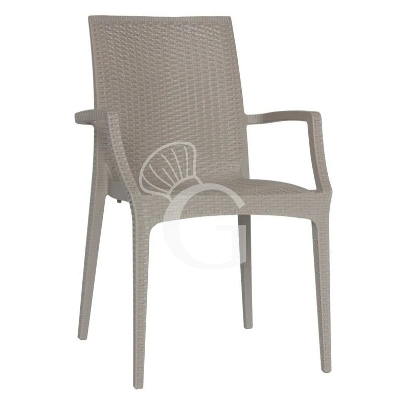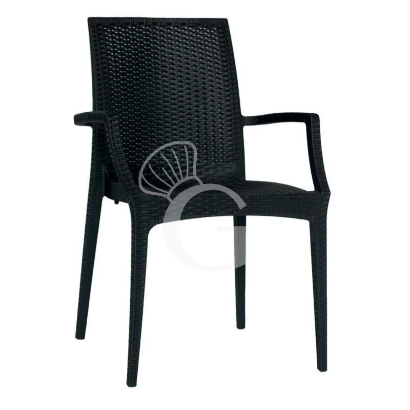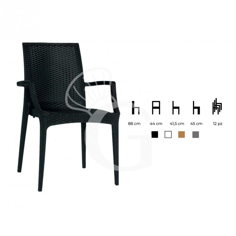 Versatile e moderna e con comodi braccioli, può essere ben inserita in ambienti esterni come giardini, terrazze, verande, esterni di locali e bar.