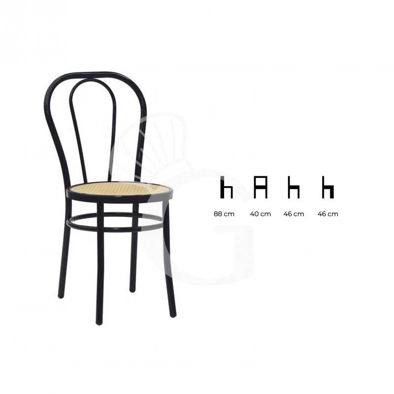 La sedia modello Tradition ha una struttura a 4 gambe in acciaio verniciato nero con poggiapiedi ed una seduta in polipropilene.