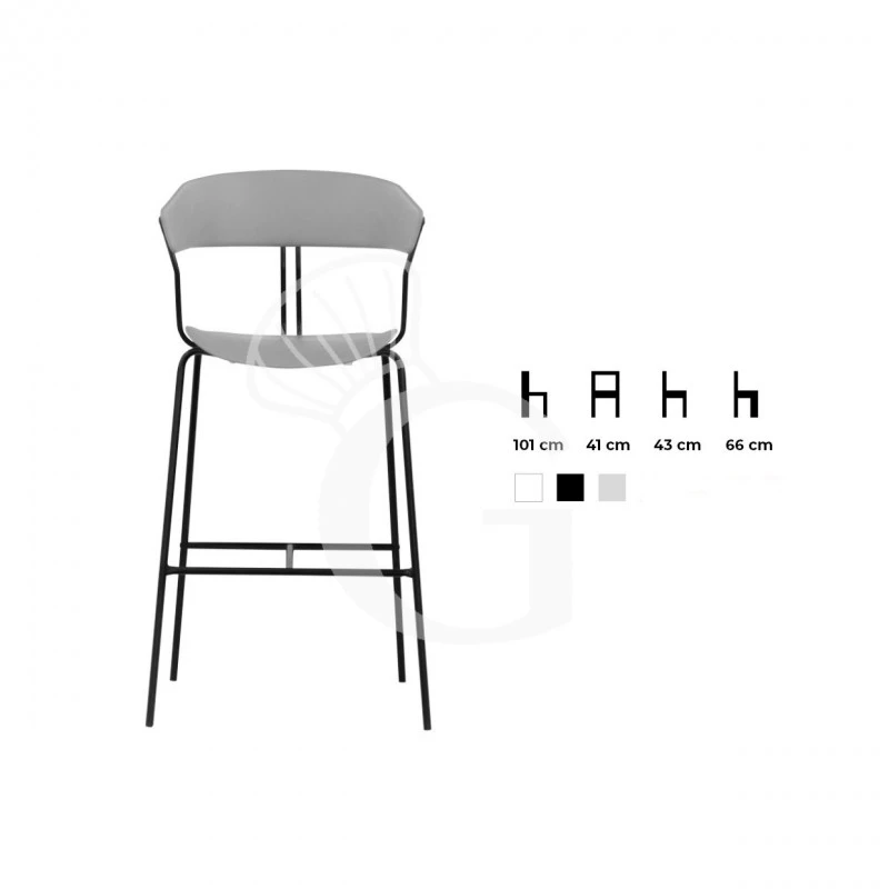Lo sgabello modello ha una struttura alta 111 cm, mentre l’altezza della seduta misura 76 cm.