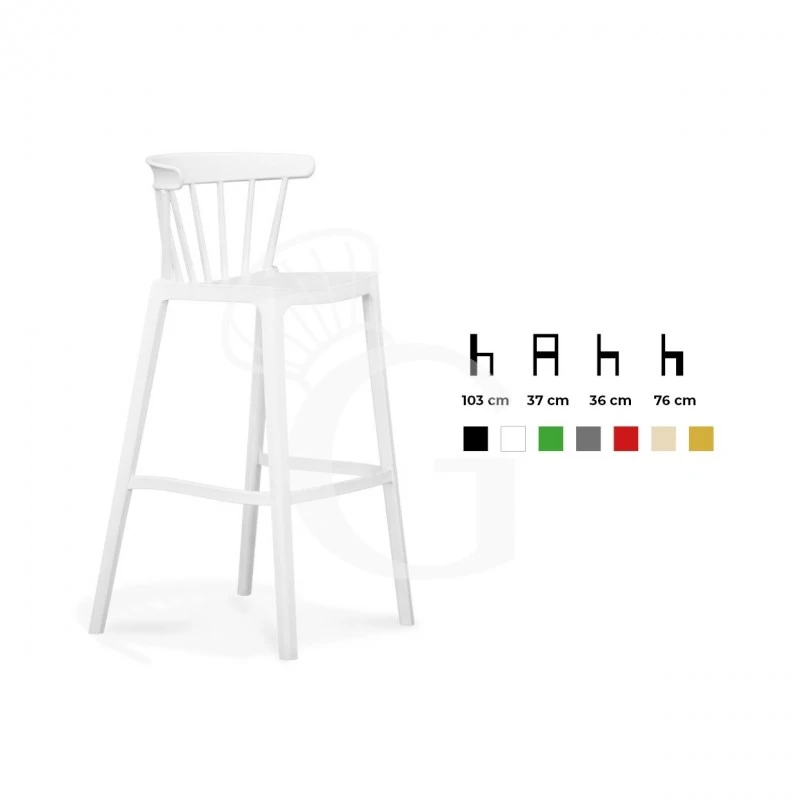 Sgabello con struttura in polipropilene. Dimensioni L 370 mm x P 360 mm x H 1030 mm.