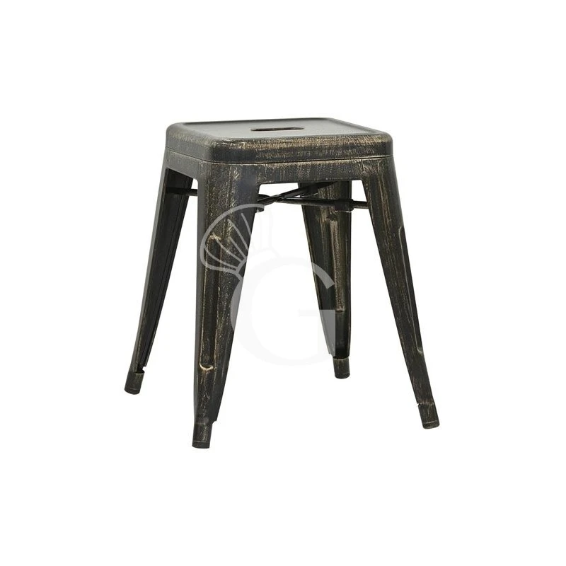 Sgabello Hole con struttura e seduta in metallo verniciato effetto anticato. Dimensioni L 300 mm x P 300 mm x H 450 mm.