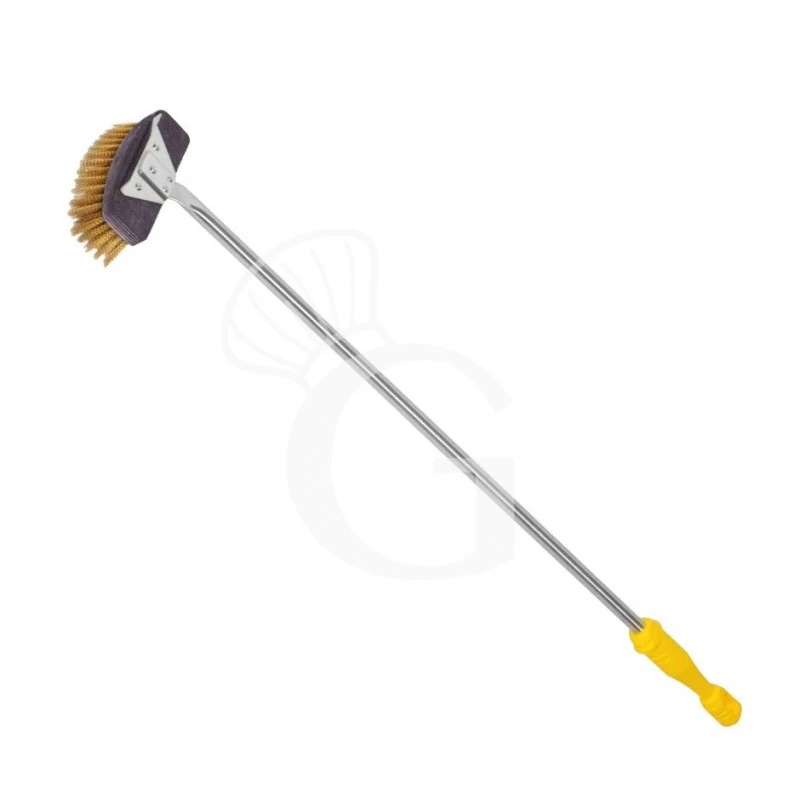 Lo spazzolone, indicato per i forni a legna, è realizzato in ottone con manico in inox e terminale in polipropilene.