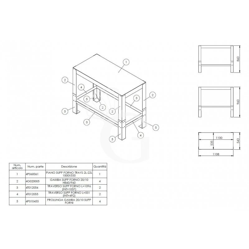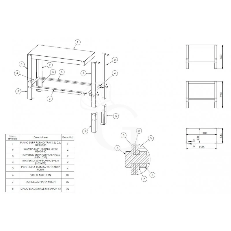 Supporto forno in ferro verniciato per forno 2L – 22L.