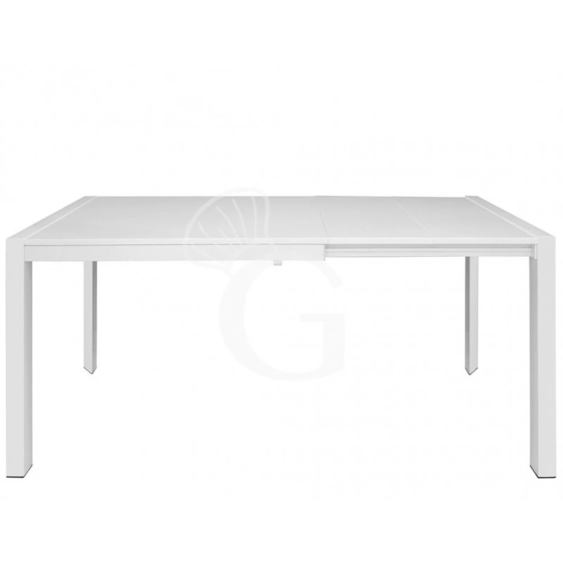 Tavolo da interno con struttura in metallo verniciato. Il piano in MDF laccato allungabile di 80 cm.