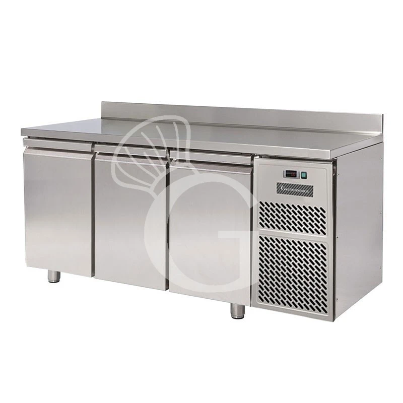 Tavolo refrigerato con 3 porte e alzatina, profondità 700 mm e temperatura 0°C/+10°C.