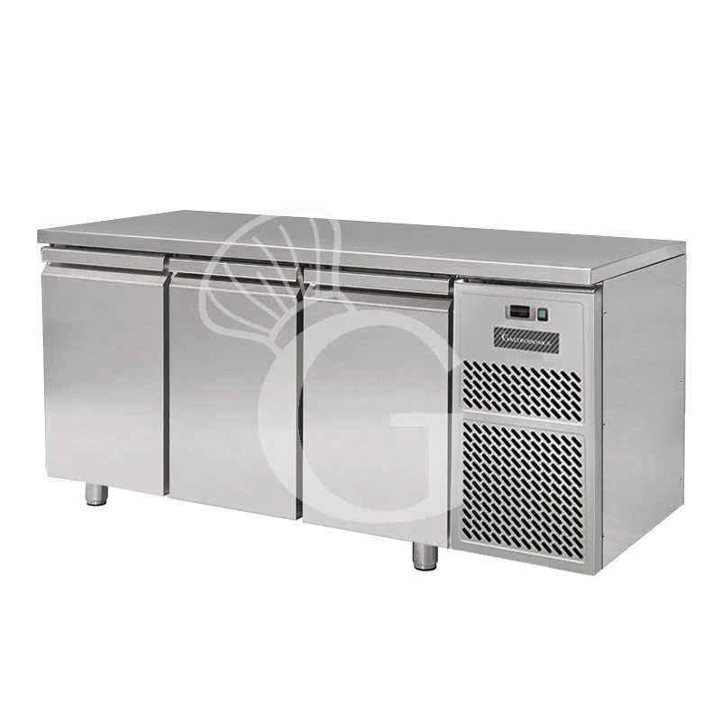 Tavolo refrigerato con 3 porte, profondità 800 mm e temperatura 0°C/+10°C.