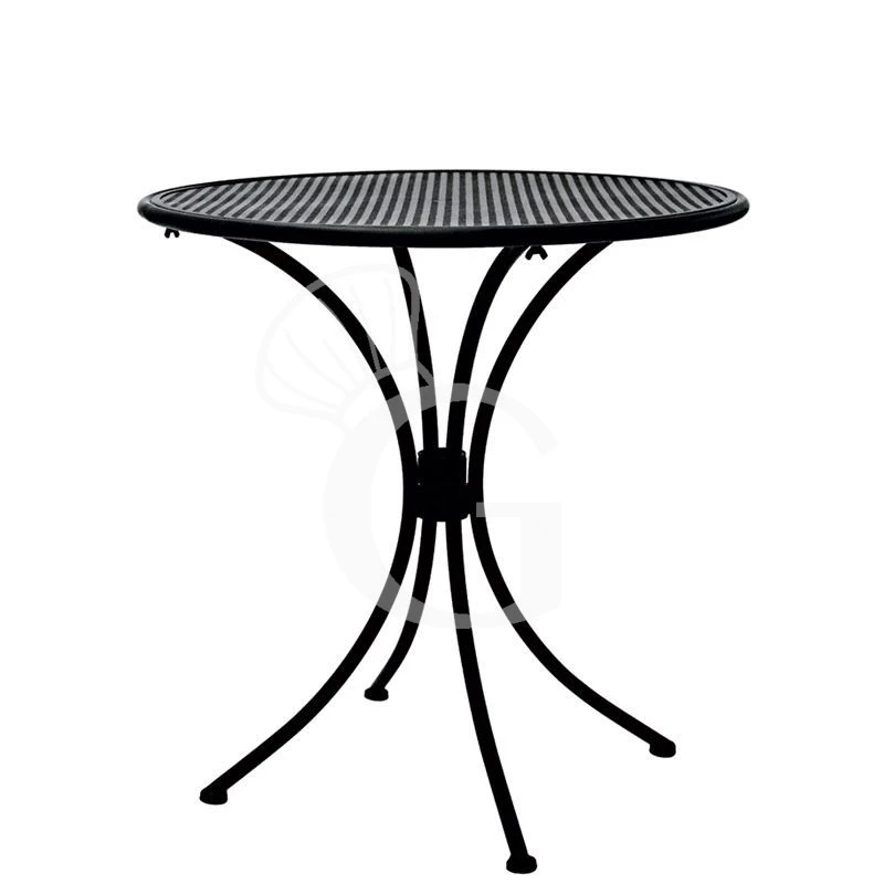 Tavolo rotondo da esterno in metallo verniciato con diametro 600 mm e altezza 720 mm.