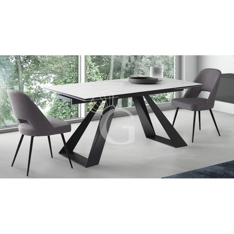 Tavolo rotondo da esterno in metallo verniciato e piano allungabile in vetroceramica.