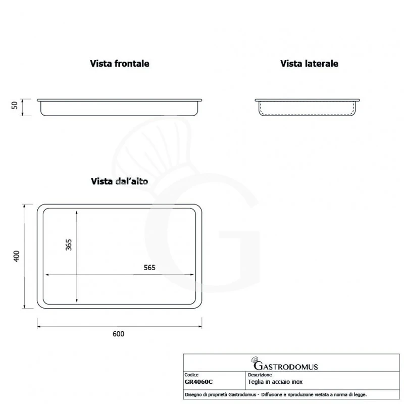 Teglia in acciaio inox – L 600 mm x P 400 mm x H 50 mm