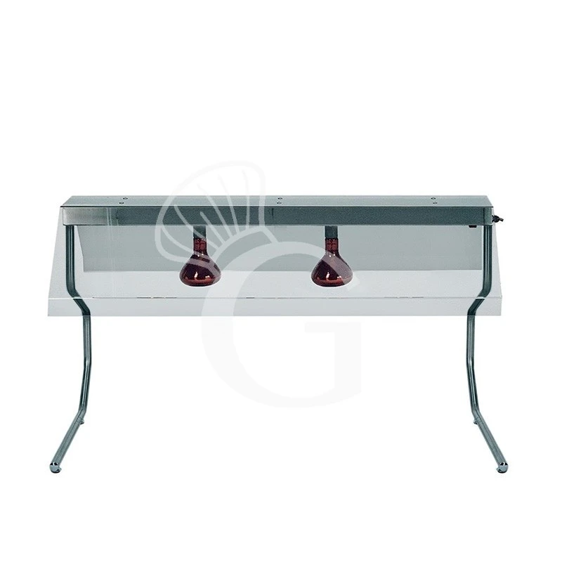Il telaio è inoltre dotato di 2 lampade a raggi infrarossi. La lampada a raggi infrarossi è un buon metodo per mantenere il cibo caldo in ristoranti, alberghi, hotel, mense e strutture di catering. Le lampade permettono di mantenere i cibi in temperatura in modo che non si raffreddino nell’intervallo di tempo che intercorre tra la loro preparazione e il momento in cui vengono serviti. Il calore generato dalle lampade viene indirizzato in modo ottimale verso le pietanze per mantenerle alla temperatura adeguata e nello stesso tempo illuminarle per una piacevole esposizione. La lampada, inoltre, permette di conservare la giusta umidità e non alterare i sapori delle pietanze.