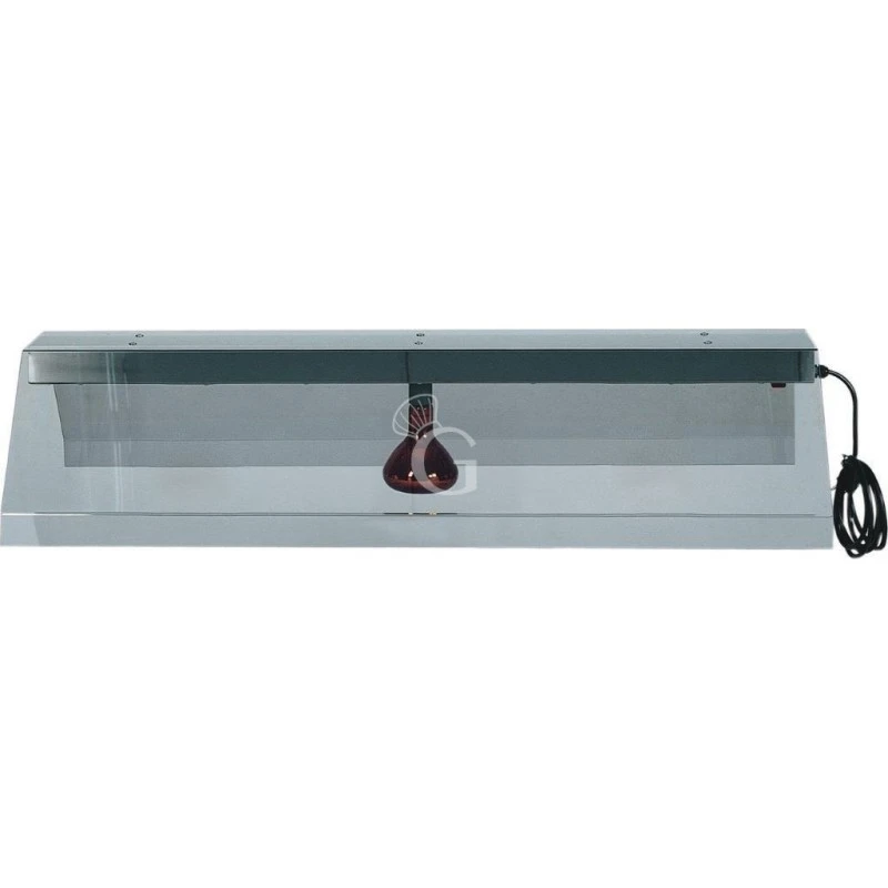 Il telaio è inoltre dotato di 1 lampada a raggi infrarossi. La lampada a raggi infrarossi è un buon metodo per mantenere il cibo caldo in ristoranti, alberghi, hotel, mense e strutture di catering. Le lampade permettono di mantenere i cibi in temperatura in modo che non si raffreddino nell’intervallo di tempo che intercorre tra la loro preparazione e il momento in cui vengono serviti. Il calore generato dalle lampade viene indirizzato in modo ottimale verso le pietanze per mantenerle alla temperatura adeguata e nello stesso tempo illuminarle per una piacevole esposizione. La lampada, inoltre, permette di conservare la giusta umidità e non alterare i sapori delle pietanze.