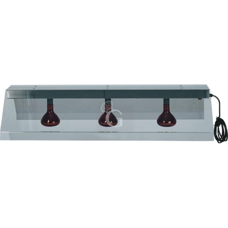 Il telaio è inoltre dotato di 3 lampade a raggi infrarossi. La lampada a raggi infrarossi è un buon metodo per mantenere il cibo caldo in ristoranti, alberghi, hotel, mense e strutture di catering. Le lampade permettono di mantenere i cibi in temperatura in modo che non si raffreddino nell’intervallo di tempo che intercorre tra la loro preparazione e il momento in cui vengono serviti. Il calore generato dalle lampade viene indirizzato in modo ottimale verso le pietanze per mantenerle alla temperatura adeguata e nello stesso tempo illuminarle per una piacevole esposizione. La lampada, inoltre, permette di conservare la giusta umidità e non alterare i sapori delle pietanze.